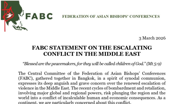 “Kilemna bawlte ahampha uhi ajieh pen Pasian tate akichi ding uhi.” (Mt.5:9). Federation of Asian Bishops Conferences (FABC) a thusaipite Bangkok Khuopi ah akikhawm ua, tu leh tu a Middle East a gal huoisie kibelapna apuohnatna uh pumkhat sakhat in aphuong uhi. Tulai tah a gamsang phasa khat leh gamziet gamveite’n bomb akhiehkhumna u’leh akikhiehkhumte’n athuh pain gal jieh un, leitung buppi ah.........